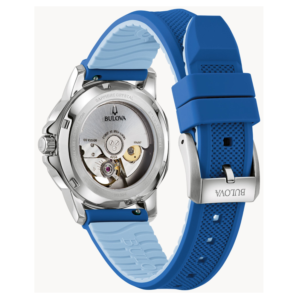 Bulova Marine Star Automatic Skeleton Blue Silicon Women’s Watch (96L324)