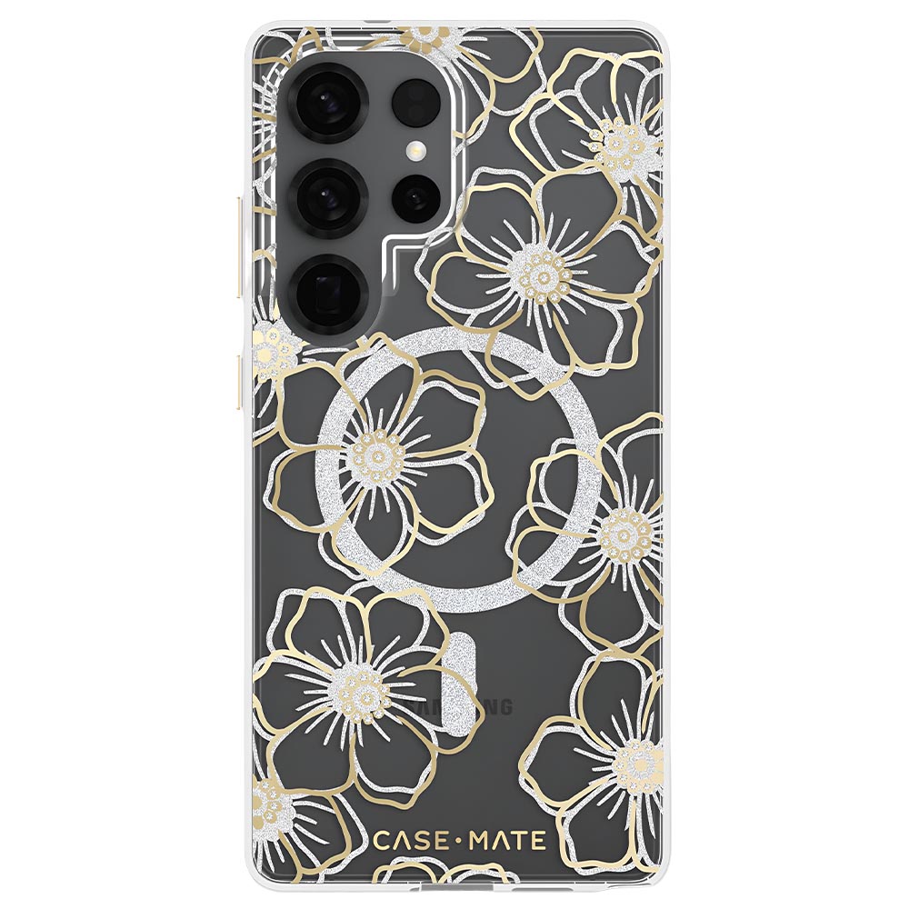 Case-Mate Floral Gems Case Suits Galaxy S25 Ultra – Gold (Magnetic)