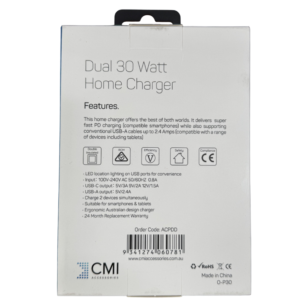 CMI Home Charger 30W Dual PD Bonus 2 in 1 Cable