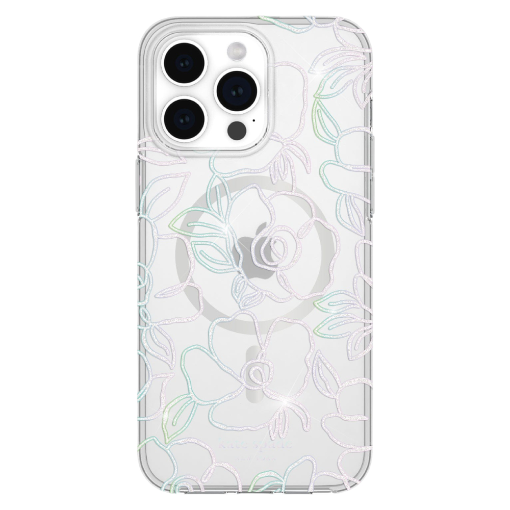 iPhone 15 Pro Max Design Hard MagSafe Case – Modern Floral Silver [Kate Spade New York KSNY]