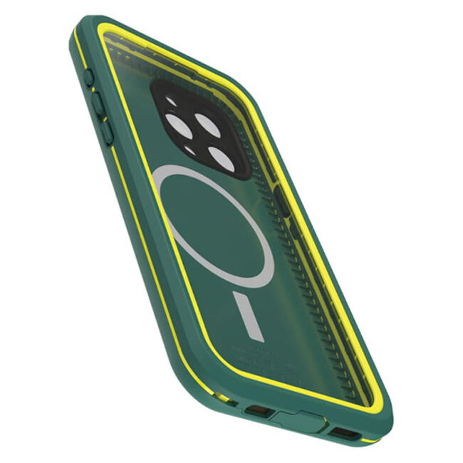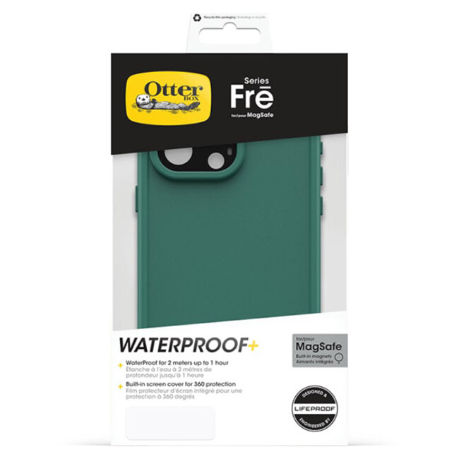 Weekday spreadsheet wizard. Weekend trail runner. Everyday environmentalist. Designed and engineered by LifeProof to keep pace with your productivity and your pursuits, OtterBox FRĒ Series waterproof phone cover with MagSafe also helps lessen your impact on the planet. OtterBox FRĒ covers your phone on all sides, keeps up with your every activity — and survives hard falls along the way. Plus, it snaps securely to MagSafe accessories, letting you use OtterBox FRĒ Series with MagSafe in new ways and places.
